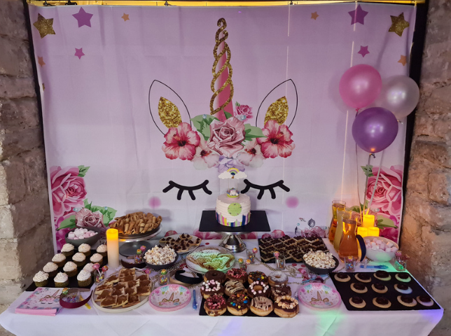 Gâteau personnalisé, décoration à thème, animation, musique, traiteur maison : tout est pensé pour créer une fête sur-mesure, mémorable et sans stress pour vous.